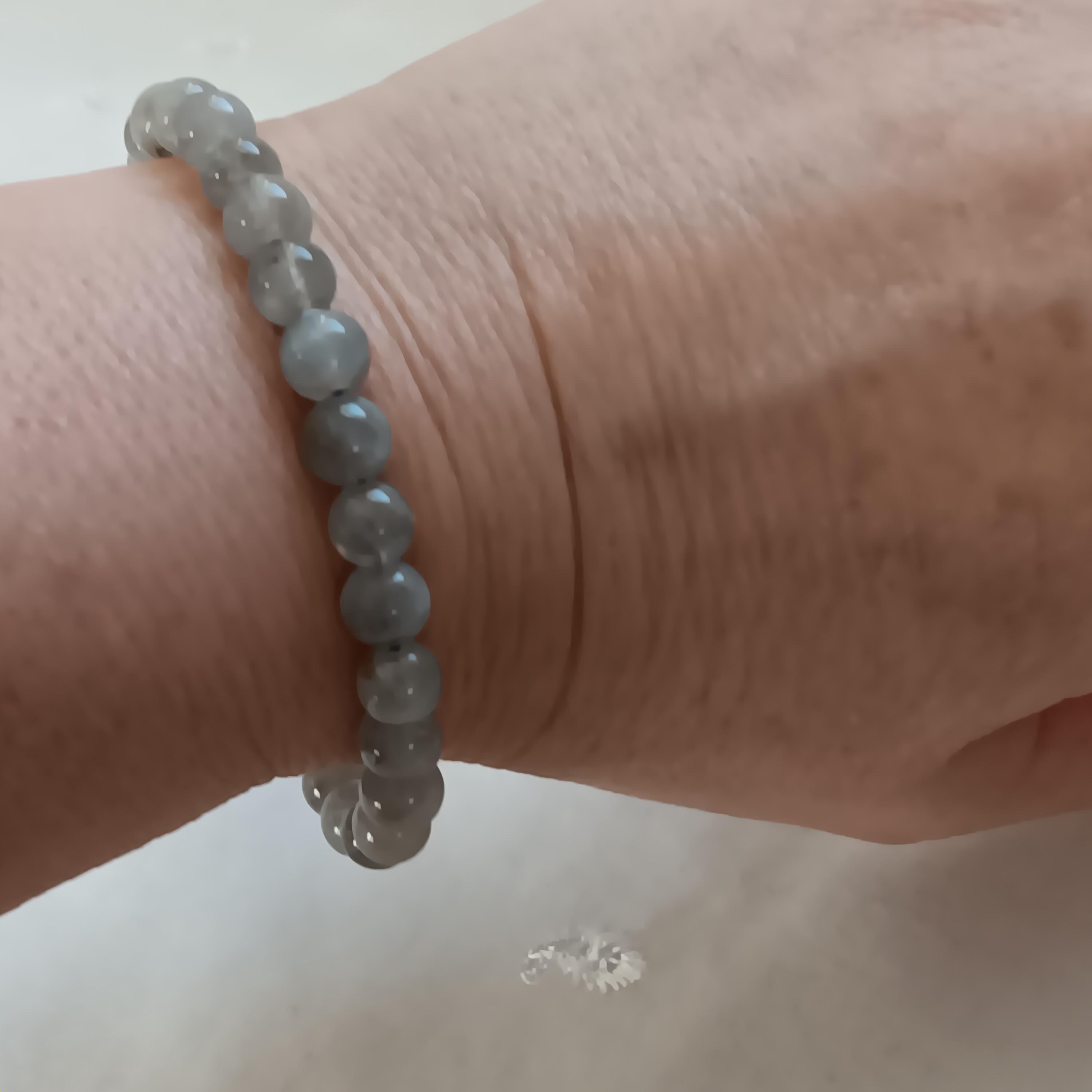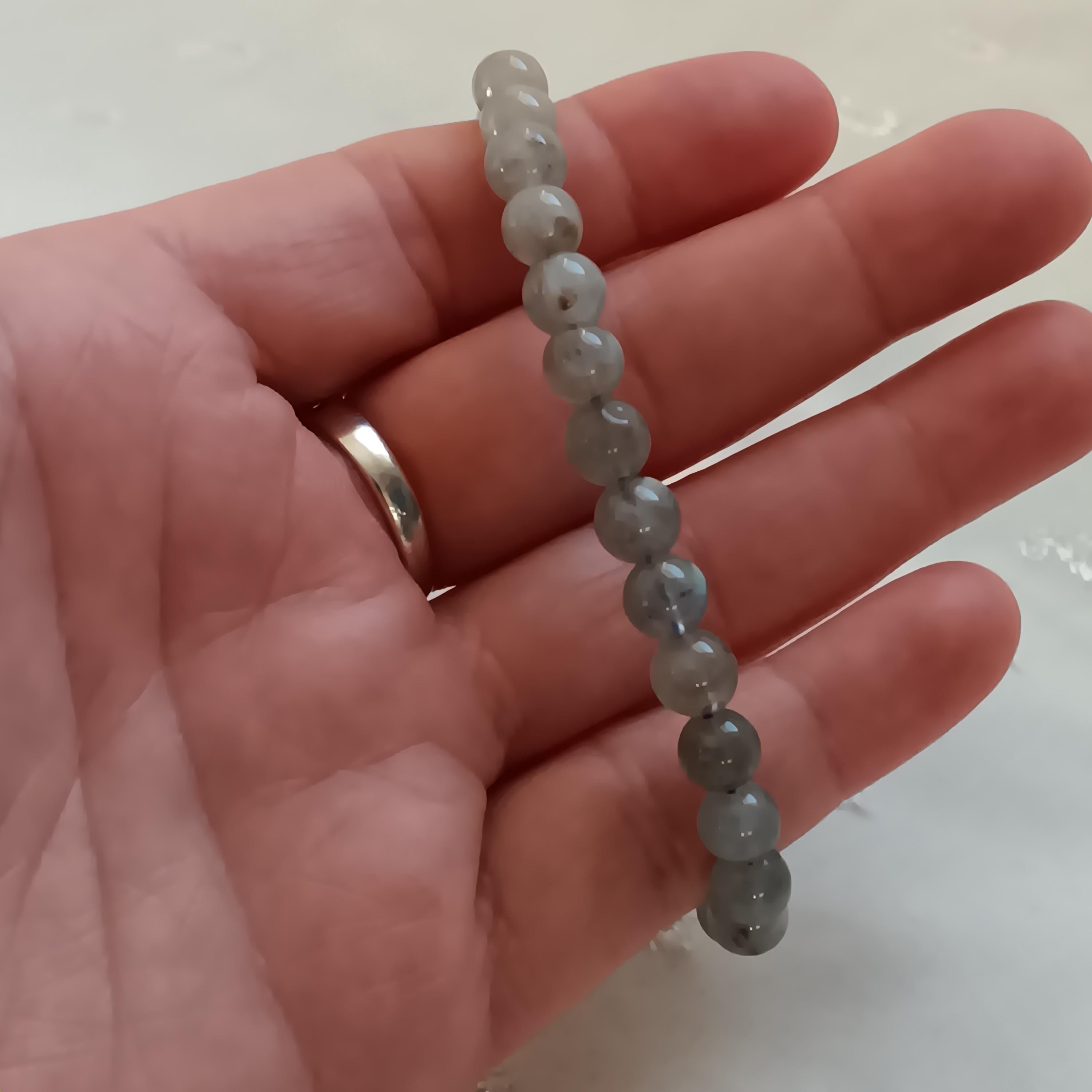 Lovely, genuine labradorite bead stretch bracelet. Labradorite is known as a "Stone of Transformation," widely used to boost intuition, provide spiritual protection, and promote personal growth. It is believed to balance energy, reduce stress, and strengthen willpower, making it popular for navigating change. The round beads are in a stretch cord, easy to wear, brand new, never worn. $20 price firm. Thanks. 🙂