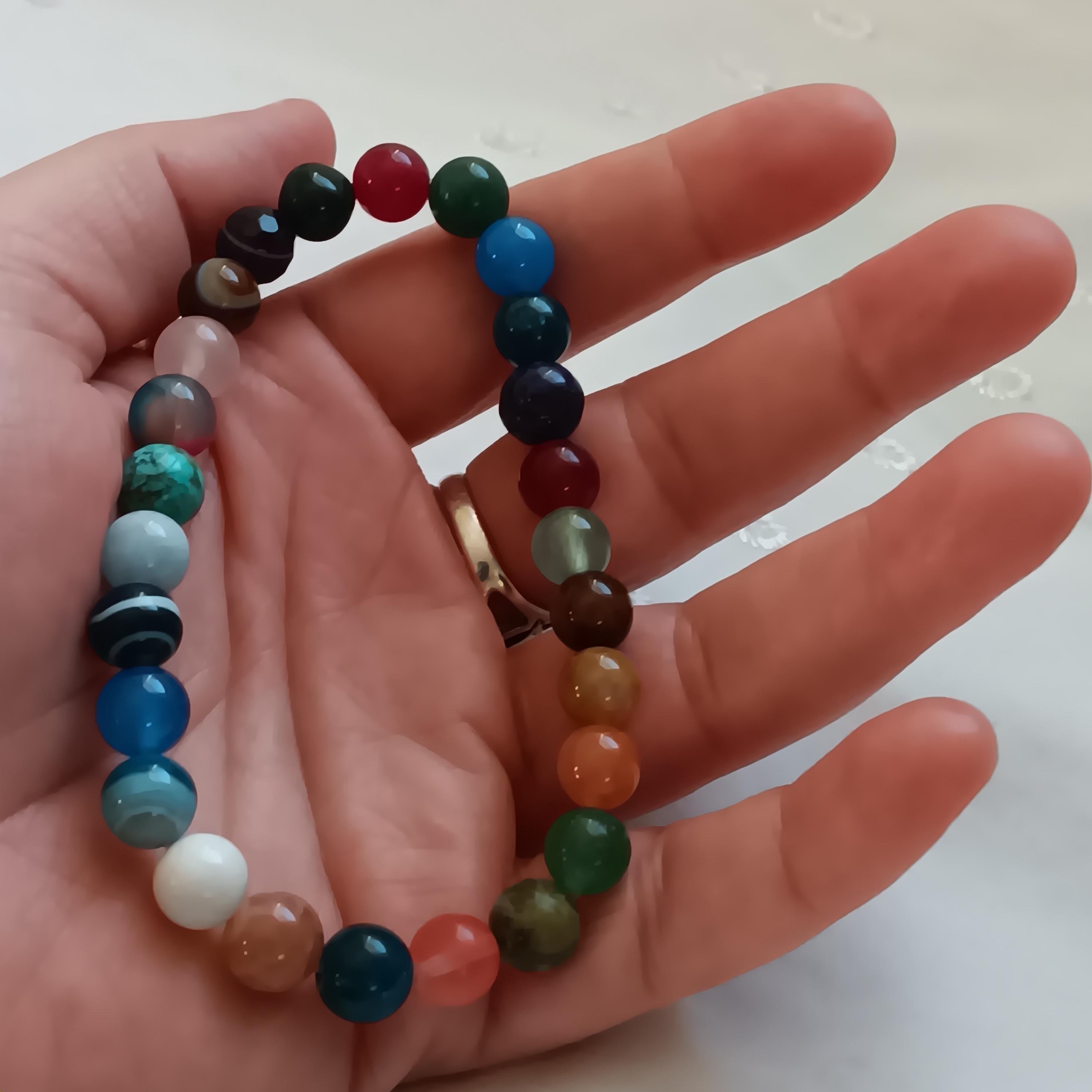 Genuine, Multi-Gemstone, Beaded, Rainbow Stretch Bracelet