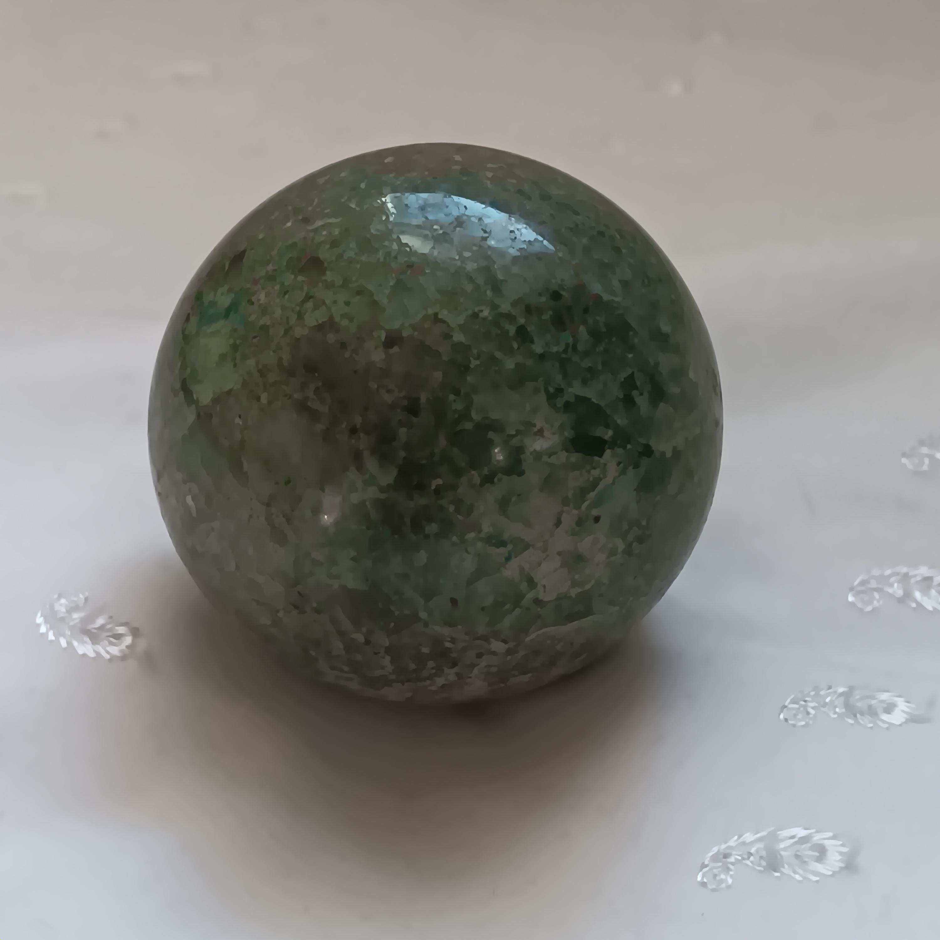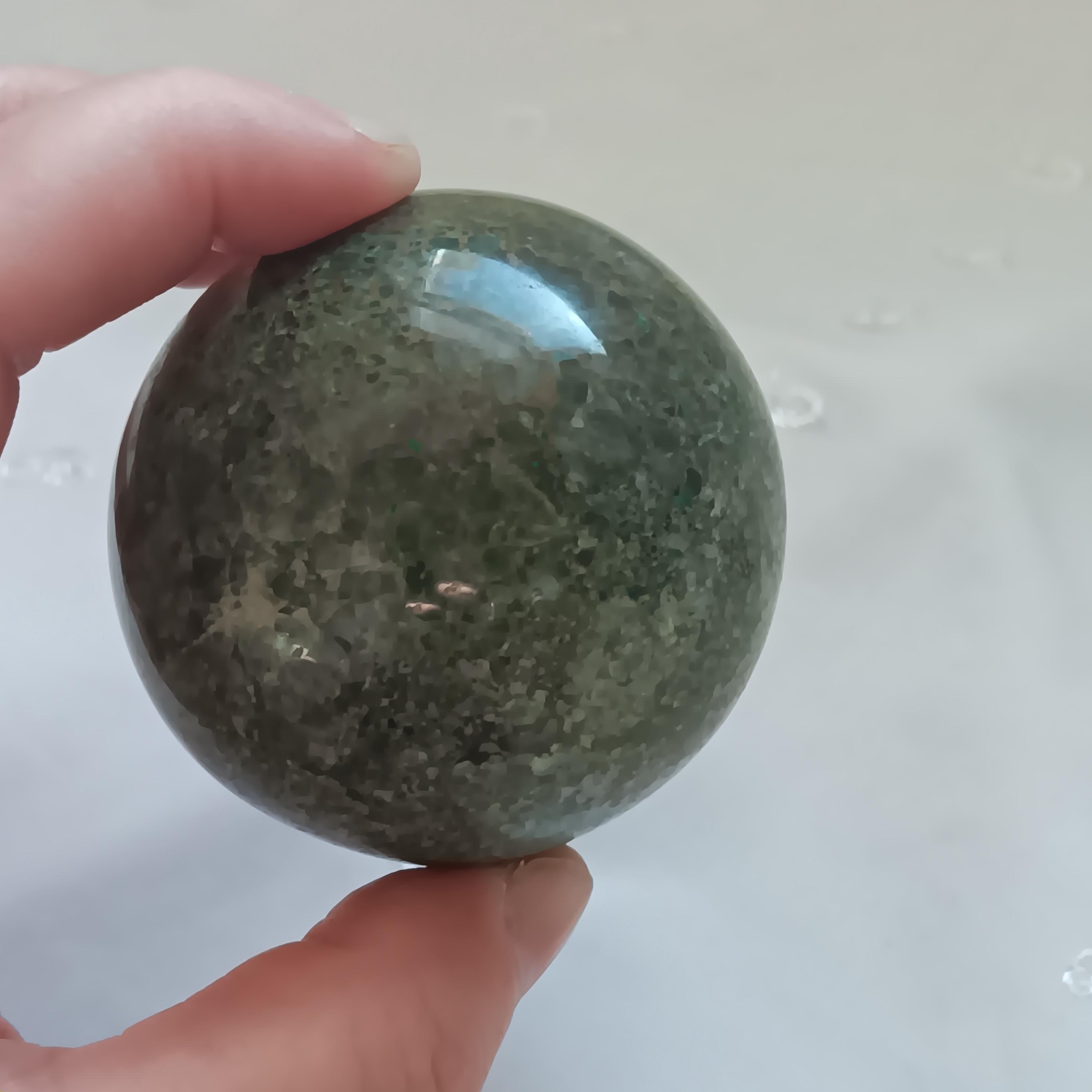 Genuine Blue Jasper sphere, 3" in diameter. It's kind of a mix of Blue and green, very nice. Blue Jasper is associated with peace, spiritual connection, and empowerment. It is a grounding stone that promotes stability while boosting self-assurance. $25 price firm. Thanks